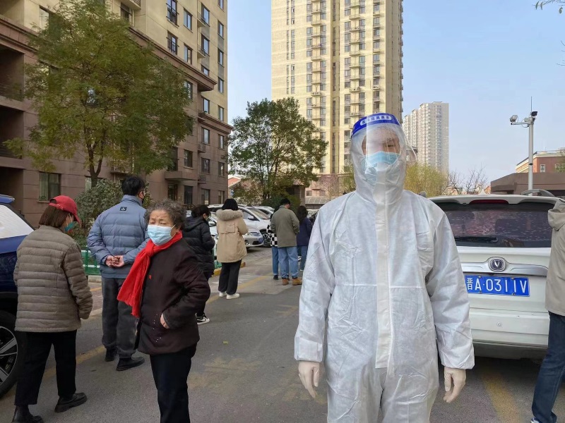11月21日,辰宇公司董志超、李心貝、張維州、段曉娟、郭亞生等黨員職工就地轉(zhuǎn)崗,向社區(qū)報到,積極投身疫情防控的各項工作中,他們有的穿著白色防護服,有的穿著志愿者紅馬甲,協(xié)助維持秩序,負責采集信息,他們工作認真,耐心細致,積極配合社區(qū)人員開展工作,得到了社區(qū)居民的肯定和表揚。