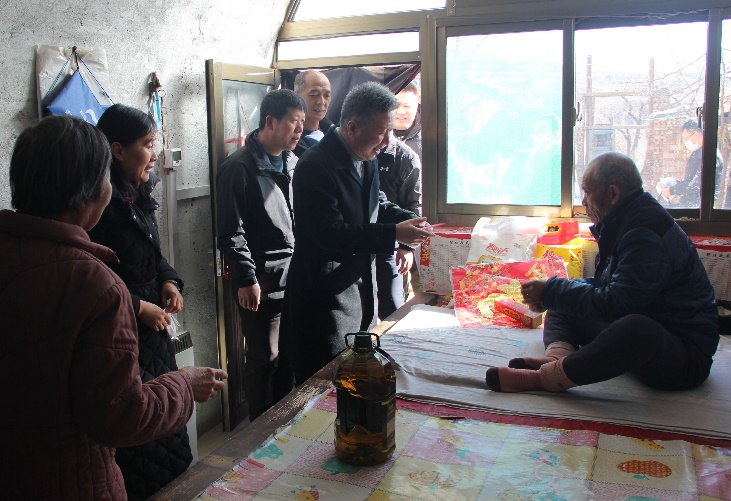 羊圈莊村兩委為感謝集團(tuán)公司多年來對(duì)脫貧工作的大力幫扶,特意為集團(tuán)公司送上了一面寫有“精準(zhǔn)扶貧顯真情 脫貧攻堅(jiān)當(dāng)先鋒”的錦旗。走訪中,集團(tuán)公司黨委書記、董事長(zhǎng)郝東輝,黨委副書記、董事閆水平一行走訪慰問了貧困戶張開正和趙秀亮,為他們送上了慰問金及米、面、油、春聯(lián)等慰問品,并向他們致以新春祝福。每走訪一戶,集團(tuán)公司領(lǐng)導(dǎo)都與貧困戶及其家屬面對(duì)面交談、心貼心交流,詳細(xì)了解了他們的家庭狀況及身體近況,鼓勵(lì)他們積極面對(duì)生活,堅(jiān)定脫貧信心,通過自己的辛勤勞動(dòng)早日實(shí)現(xiàn)脫貧致富。