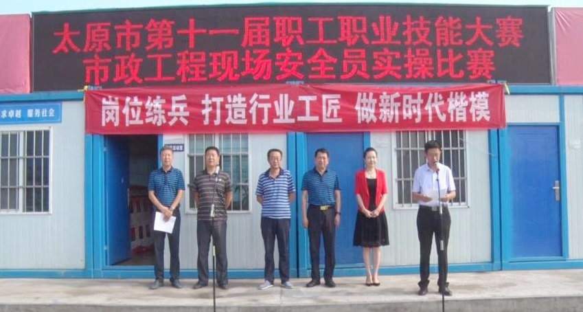8月10日,由太原市總工會(huì)、太原市人社局、太原市經(jīng)信委、太原市科技局聯(lián)合主辦,太原市政建設(shè)集團(tuán)有限公司承辦的太原市第十一屆職工職業(yè)技能大賽市政工程現(xiàn)場(chǎng)安全員實(shí)際操作比賽,在太原市政集團(tuán)康樂街泵站項(xiàng)目部隆重舉行。太原市總工會(huì)經(jīng)濟(jì)技術(shù)部部長(zhǎng)梁家齊,太原市職工技術(shù)交流站站長(zhǎng)周彬,太原市住建委安全處處長(zhǎng)李效忠,宣傳部副部長(zhǎng)楊紅迎,太原市政集團(tuán)領(lǐng)導(dǎo)郝東輝、馮忠出席了開幕式。開幕式由黨委委員、監(jiān)事會(huì)主席、工會(huì)主席馮忠主持。