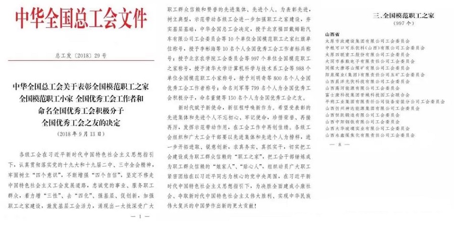 近日,太原市政建設(shè)集團(tuán)有限公司工會(huì)榮獲“全國(guó)模范職工之家”光榮稱號(hào)。這是中華全國(guó)總工會(huì)給予基層工會(huì)的最高榮譽(yù),也是對(duì)集團(tuán)公司工會(huì)近幾年各項(xiàng)工作的充分肯定。