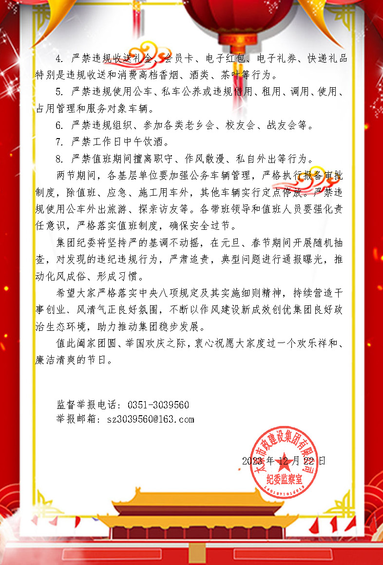 ——致集團(tuán)所屬黨(總)支部、全體黨員干部廉潔過節(jié)的公開信 發(fā)布時間:2023-12-28 10:20:41 來源:本站 閱讀:14779