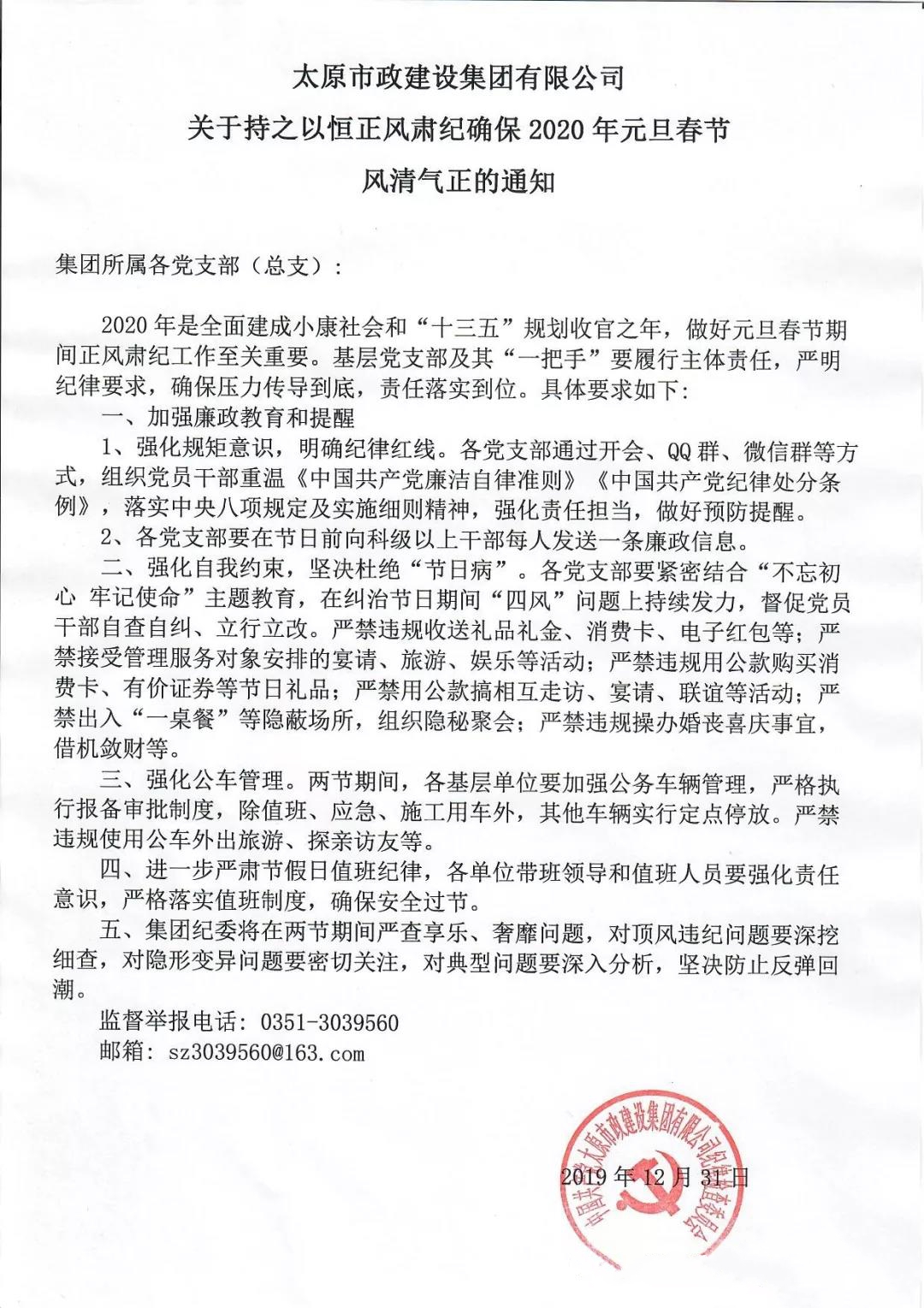 持之以恒正風(fēng)肅紀(jì)確保2020年元旦春節(jié)風(fēng)清氣正的通知 發(fā)布時(shí)間:2020-01-23 15:17:24 來(lái)源:本站 閱讀:20081