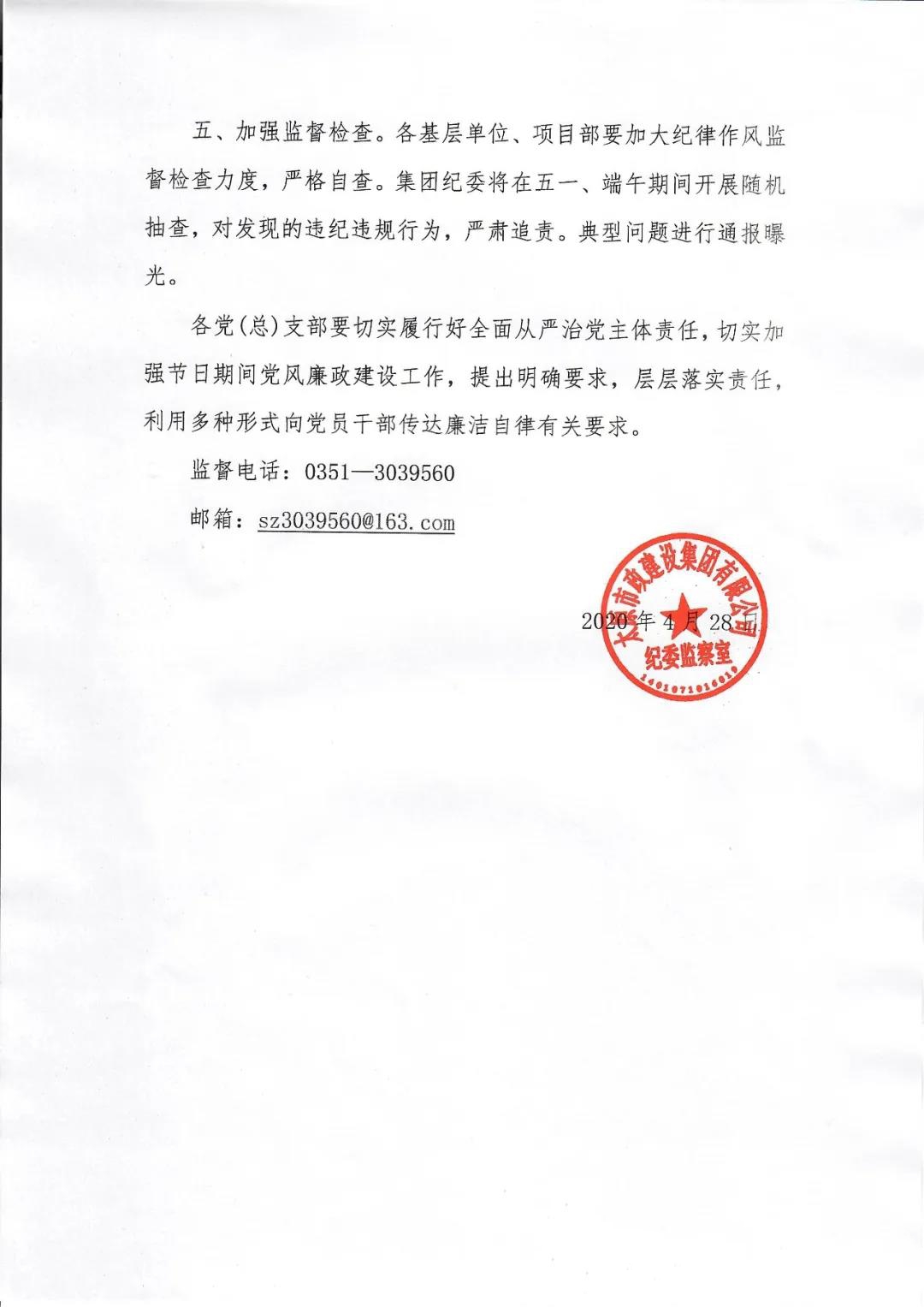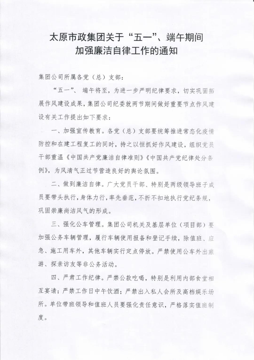 太原市政集團關(guān)于“五一”、端午期間加強廉潔自律工作的通知