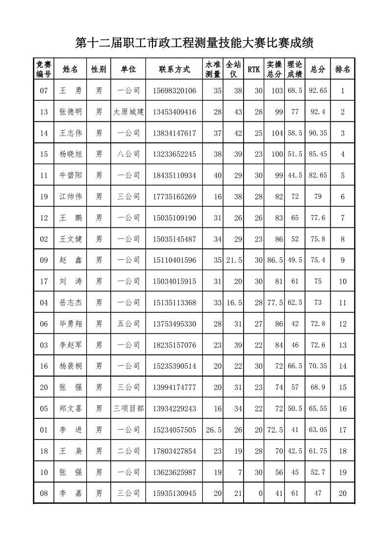 又訊:本屆市政工程測量放線員技能大賽,共有94名選手報名參賽,大賽分為理論和實(shí)操兩部分。理論考試獲得前20名的選手進(jìn)入實(shí)際操作比賽。經(jīng)過一天的角逐,裁判組根據(jù)選手現(xiàn)場操作情況進(jìn)行綜合評判、打分。每位選手最終成績由30%的理論成績和70%的實(shí)操成績組成,最終決出前16名,其中榮獲前6名的選手將報請市勞動競賽委員會給予記功表彰,7-16名的選手頒發(fā)“優(yōu)秀選手”榮譽(yù)證書。