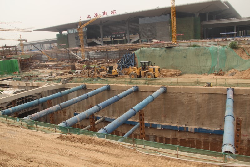 太原南站東廣場配套路網(wǎng)工程位于太原南站東側(cè),西起太原火車南站東出口,東至太行路,南至車站南街以南200米,北至南中環(huán)街,共包括10條市政道路、五條高架匝道引橋及所屬沿線的照明、管線等配套設(shè)施,同時外加2條貴賓小路。其中,北營北路包含地下通道及地面道路兩部分,地下通道全長1124米。該工程作為省級重點工程項目,受到了社會各界的重點關(guān)注和上級領(lǐng)導(dǎo)的高度重視,于2017年4月開工建設(shè),由八公司負責承建。施工中的重難點在于北營北路地下通道最深處達21米的深基坑施工,項目部采用混凝土灌注樁加內(nèi)支撐的模式,第一 道內(nèi)支撐為混凝土支撐,其余為多道鋼支撐,保證基坑壁穩(wěn)定性。地下通道施工時,該通道頂板為折線拱形頂板,澆筑難度較大,項目部組織技術(shù)人員根據(jù)工程特點,研究出一種全新的支模方法,利用插模板的方式進行分段澆筑,在確保工程質(zhì)量的同時,保證施工進度。同時,由于該工程情況復(fù)雜,項目部技術(shù)人員從“細節(jié)”入手,及時發(fā)現(xiàn)問題,并反復(fù)溝通協(xié)調(diào),提出了合理化建議,確保了工程有序推進。在2019年的施工過程中,集團公司組織五家施工單位,60多臺施工機械、130多名施工人員,經(jīng)過21天的奮戰(zhàn),協(xié)作完成10條道路從路基、水穩(wěn)到瀝青攤鋪的施工任務(wù),其中瀝青攤鋪面積達到7萬平方米。全體參建人員在太原城市建設(shè)的“戰(zhàn)場”上,傾情演繹著市政鐵軍的“速度與激情”,太原南站以嶄新的面貌迎接“二青會”的八方來客。