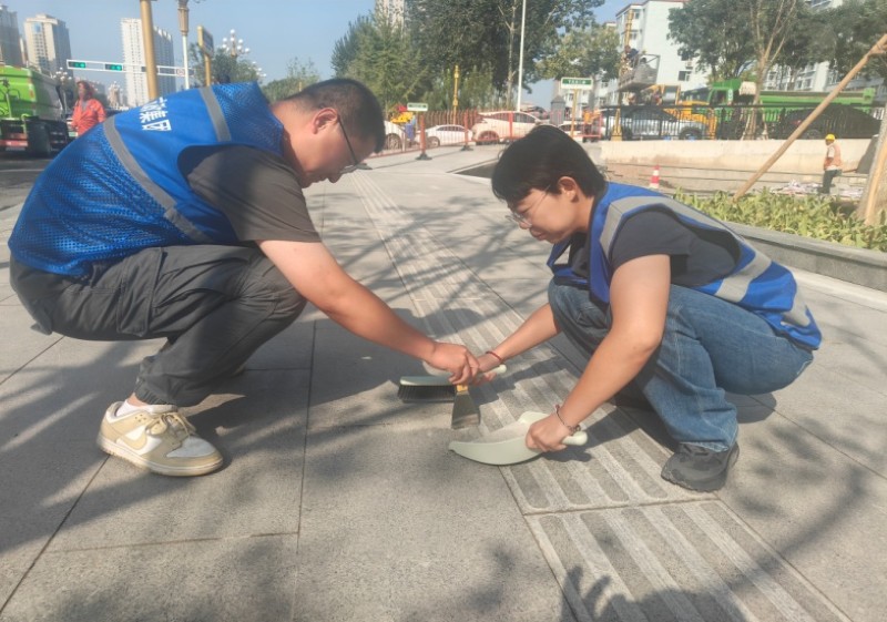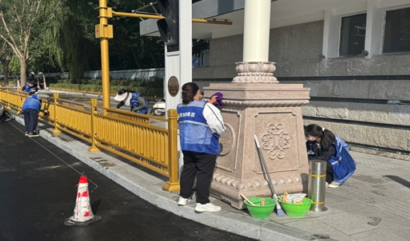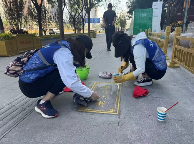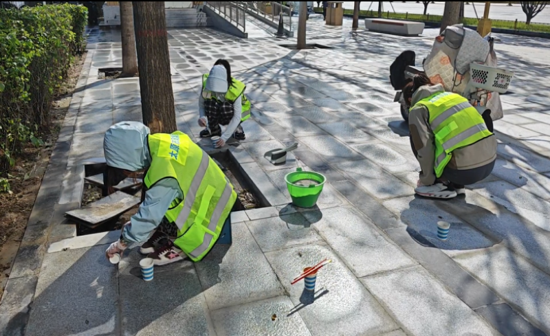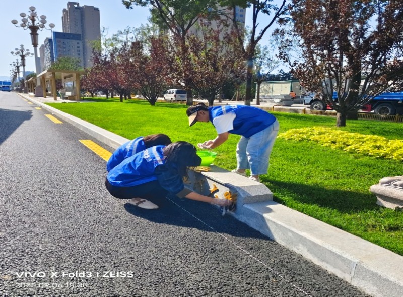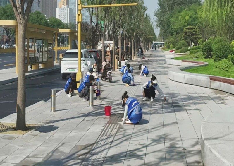 活動(dòng)自9月4日起為期六天,覆蓋迎澤大街(西段)全線,重點(diǎn)圍繞附屬設(shè)施清潔與道路精細(xì)化維護(hù)展開?;顒?dòng)中,身著統(tǒng)一藍(lán)色“太原市政集團(tuán)”馬甲的志愿者們,手持長(zhǎng)柄擦洗器、水桶、抹布、鏟刀、掃帚等工具,對(duì)道路兩側(cè)公交站臺(tái)、路燈基地、護(hù)欄、照明燈桿等設(shè)施進(jìn)行系統(tǒng)清理與擦洗;同步推進(jìn)地磚灌縫精細(xì)化維護(hù)作業(yè),通過專業(yè)操作,確保每一條裂縫都“嚴(yán)絲合縫”,有效提升路面耐用性與通行舒適度,以實(shí)際行動(dòng)為市民出行安全與舒適保駕護(hù)航;同時(shí),志愿者專門對(duì)道路沿線的石頭字景觀展開描金作業(yè),細(xì)刷蘸取金色涂料,一筆一畫精心描摹,成為主干道上一道兼具文化氣息與視覺美感的獨(dú)特風(fēng)景。