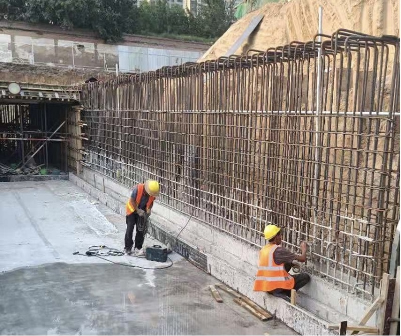 在K1+030處施工時(shí),南北方向有一條地下人行通道,項(xiàng)目部需要在通道內(nèi)安裝疏散指示燈、應(yīng)急指示燈、熒光燈等。在施工過程中,項(xiàng)目部緊跟道路施工方的施工進(jìn)度,當(dāng)?shù)缆肥┕し侥竟ぶ鹉>邥r(shí),項(xiàng)目部相關(guān)施工人員需要立即將鋼管預(yù)埋進(jìn)鋼筋架中,這就需要項(xiàng)目部和道路施工方緊密配合,施工員每日緊盯施工進(jìn)度,見縫插針式地完成管線預(yù)埋工序,為后續(xù)施工奠定了基礎(chǔ)。由于前期設(shè)計(jì)圖與施工實(shí)際情況有出入,無(wú)法確定電源箱的具體位置,現(xiàn)場(chǎng)技術(shù)負(fù)責(zé)人多次與設(shè)計(jì)院聯(lián)系,經(jīng)過不斷實(shí)地勘察、測(cè)量、畫圖對(duì)照,最終確定電源箱的實(shí)際位置,并在道路上增加了多條鋼管過路,確保送電時(shí)萬(wàn)無(wú)一失。