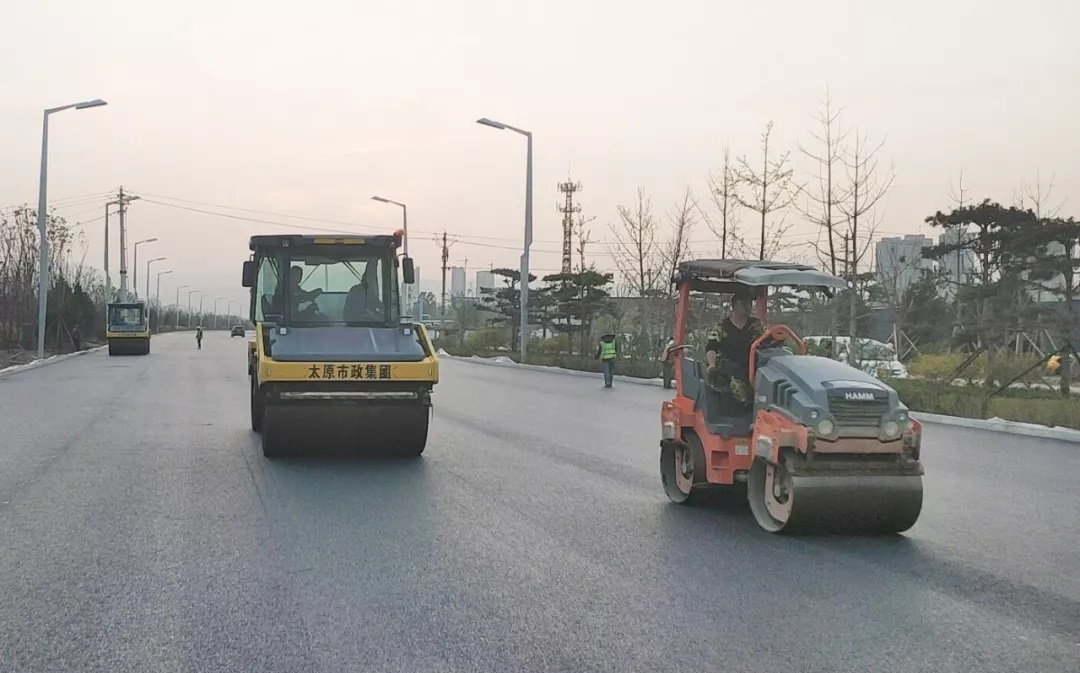 太原市政建設(shè)集團有限公司蒙山大街道排工程機動車道與非機動車瀝青上面層已鋪筑完成