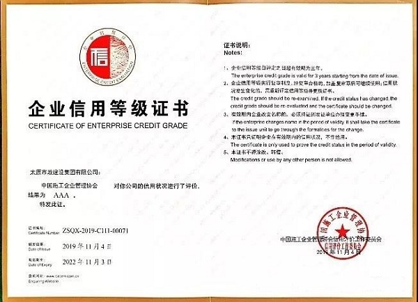 太原市政建設集團有限公司榮獲“企業(yè)信用評價AAA級信用企業(yè)”榮譽稱號