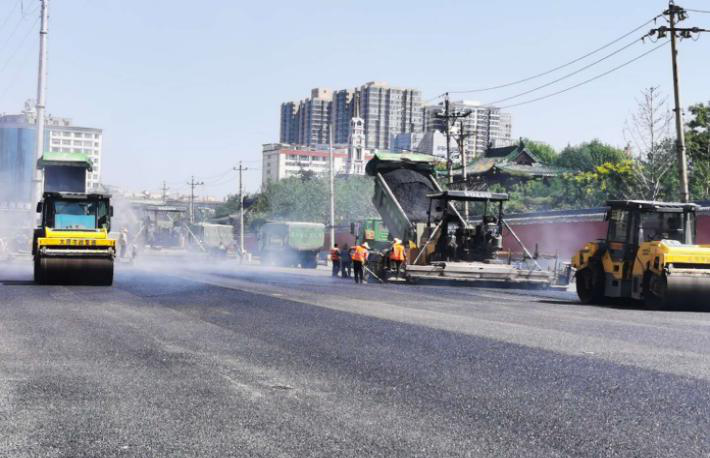 8月11日早上9點,在四公司承建的水馬路建設(shè)工程施工現(xiàn)場,項目部全體施工人員早已為工程北段下面層瀝青混凝土攤鋪做著各項準(zhǔn)備工作。當(dāng)一車車滾燙瀝青被倒入瀝青攤鋪機(jī)的入料口,隨著攤鋪機(jī)的前進(jìn),瀝青混凝土被攤鋪到地面,并散發(fā)著刺鼻的氣味,大家來不及擦拭臉上的汗水,緊隨攤鋪機(jī),用手里的摟耙不停地整平著粒料。時值酷暑,全體施工人員的臉被熱氣炙烤得發(fā)燙,身上的衣衫也早已被汗水浸濕,但大家沒有喊苦喊累,默默堅守在各自的崗位上,認(rèn)真做好每一道工序,確保路面瀝青鋪設(shè)的質(zhì)量。隨著壓路機(jī)往復(fù)碾壓,一條黝黑平整的柏油路逐漸有了雛形,接下來項目部將會進(jìn)行其他路段的攤鋪工作。
