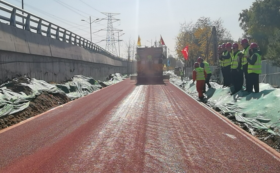 十一月的汾河,秋意正濃、萬(wàn)籟無(wú)聲,濱河自行車專用道工程一標(biāo)段的施工現(xiàn)場(chǎng)卻依舊熱火朝天,沿線隨處可見(jiàn)施工人員身穿工作服、頭戴安全帽的忙碌身影。隨著一標(biāo)段道路部分最上層彩色涂層開(kāi)始鋪裝,項(xiàng)目部正式進(jìn)入決勝攻堅(jiān)階段。預(yù)計(jì)一標(biāo)段將于11月底完工。
