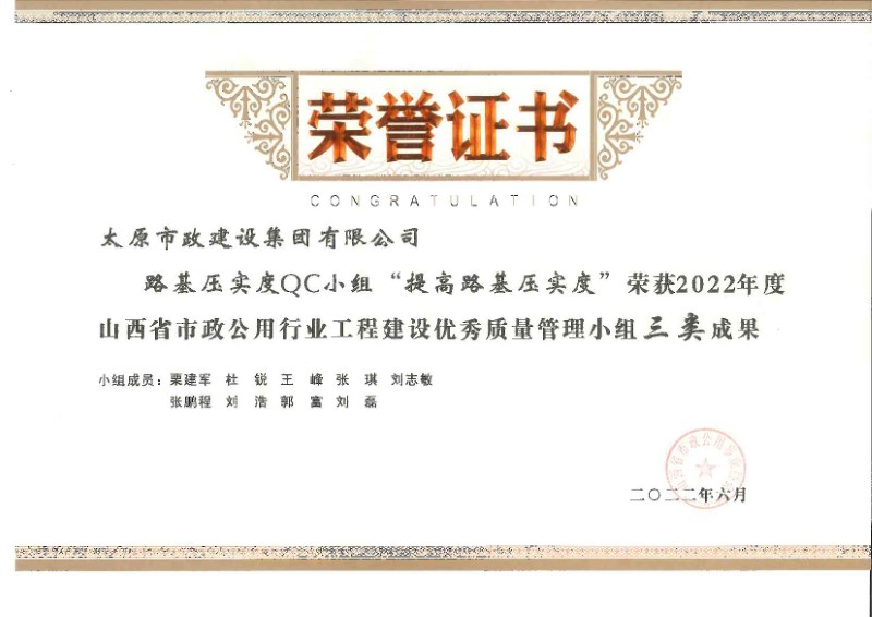 2022年度山西省市政公用行業(yè)工程建設(shè)優(yōu)秀質(zhì)量管理小組三類成果_路基壓實(shí)度QC小組“提高路基壓實(shí)度”