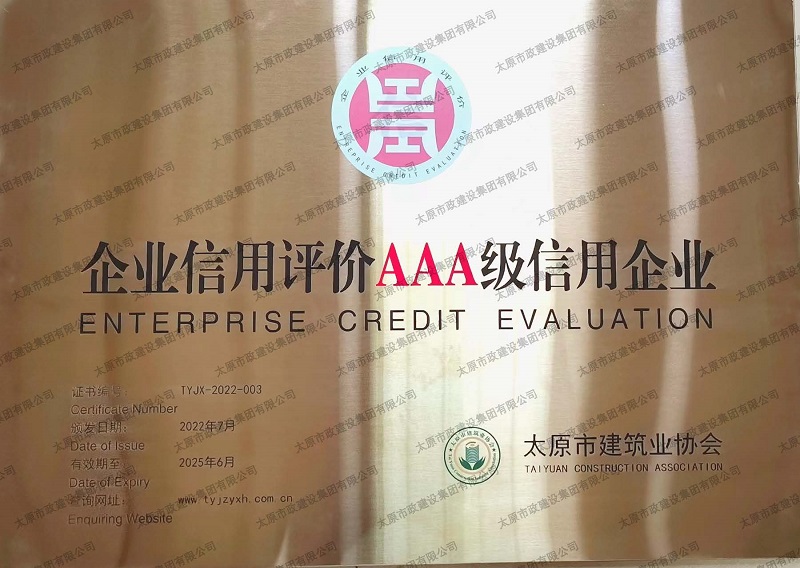 太原市建筑業(yè)協(xié)會-企業(yè)信用評價(jià)AAA級信用企業(yè)
