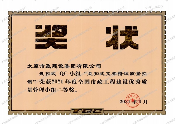 2021年度全國市政工程建設(shè)優(yōu)秀質(zhì)量管理小組三等獎(jiǎng)